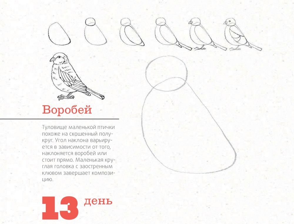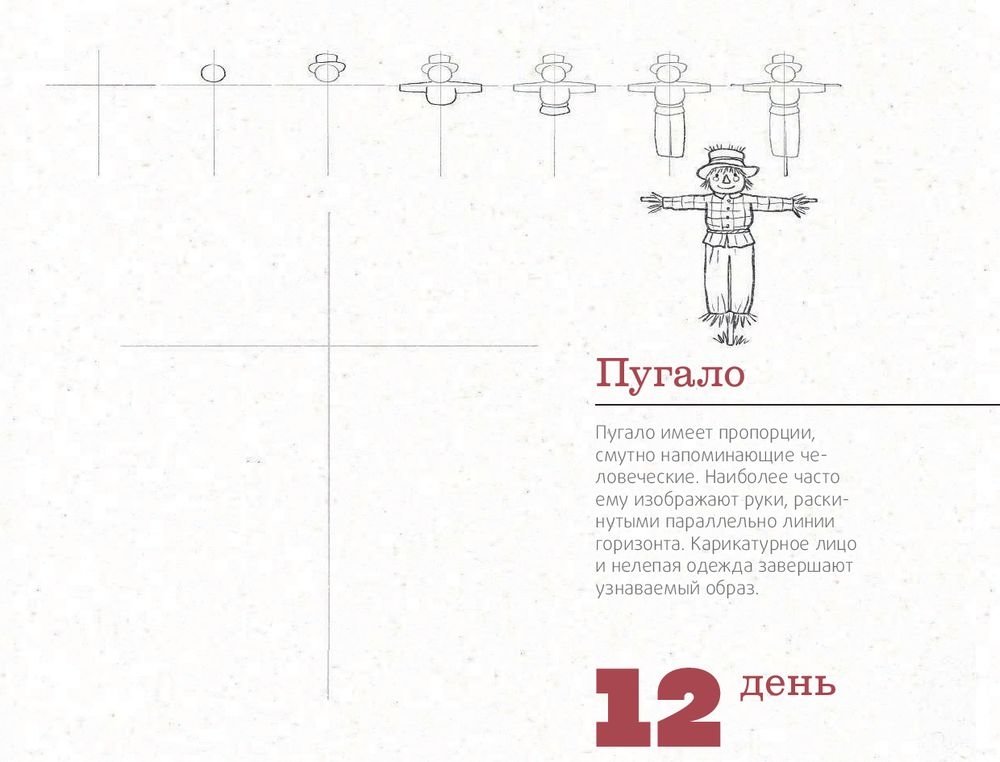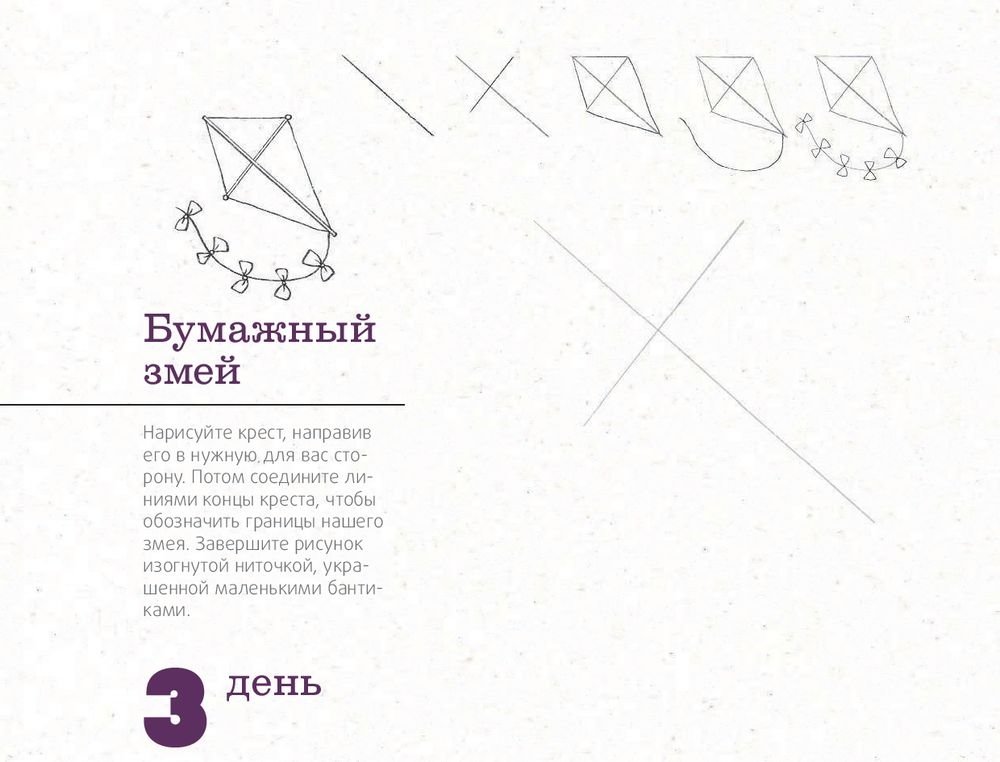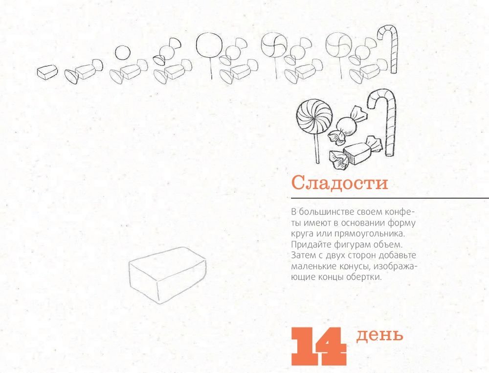 Задания первых дней покажутся вам очень простыми, однако постепенно модели становятся более сложными; шаг за шагом вы научитесь придавать объем, смотреть на изображение с точки зрения перспективы, сможете создавать эффект глубины. Персонажи, растения, животные, предметы, транспортные средства, здания...