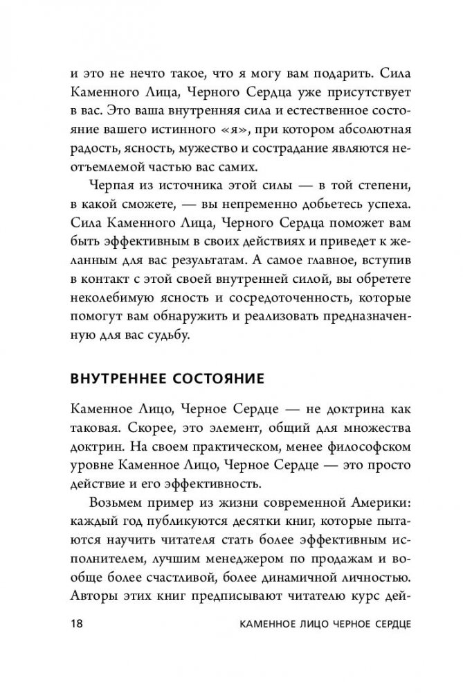 Теория Каменного Лица, Черного Сердца описывает тайный закон природы, который управляет успешным поведением в любой области жизни. Его знали американские первопроходцы. Его используют азиатские бизнесмены. С древних времен и до наших дней все успешные люди применяют этот секрет. Этот закон не ведает разделения по принципу национальности, расы или религии. Применение этого закона идет на пользу людям в деловых практиках и в личной жизни. Используя силу Каменного Лица, Черного Сердца, каждый из нас открывает то предназначение, которому должен быть верен.