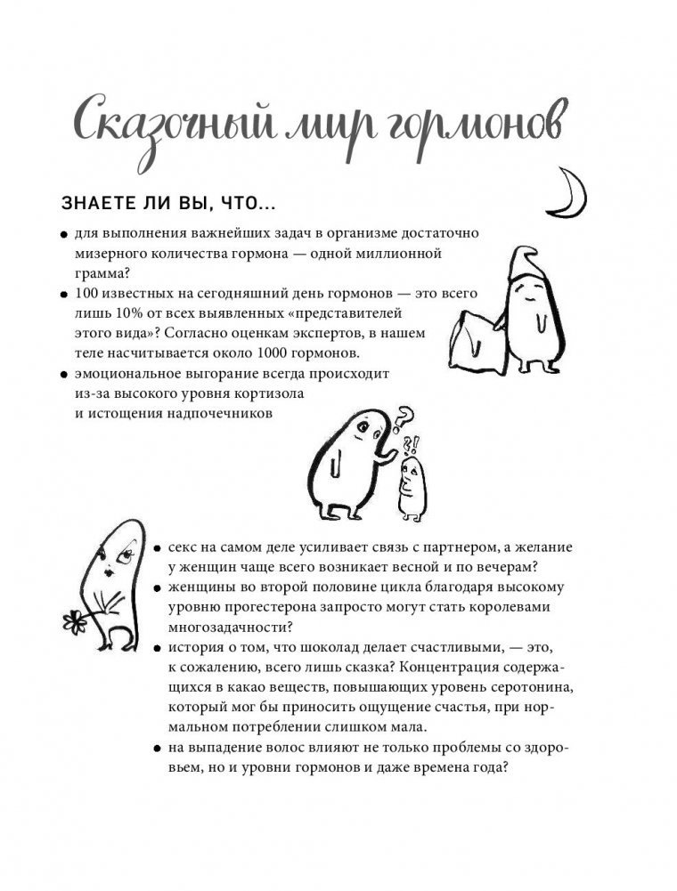 Гормоны действуют как маленькие, но мощные суперагенты — они выращивают прыщи, вызывают слезы в кино и катают наши эмоции на американских горках. Эта книга объясняет сложные гормональные процессы в понятной и занимательной форме. Она наполнена множеством интересных фактов и удивительных исследований. Кроме того, вы узнаете, какие симптомы могут иметь гормональные причины и что можно с этим сделать.