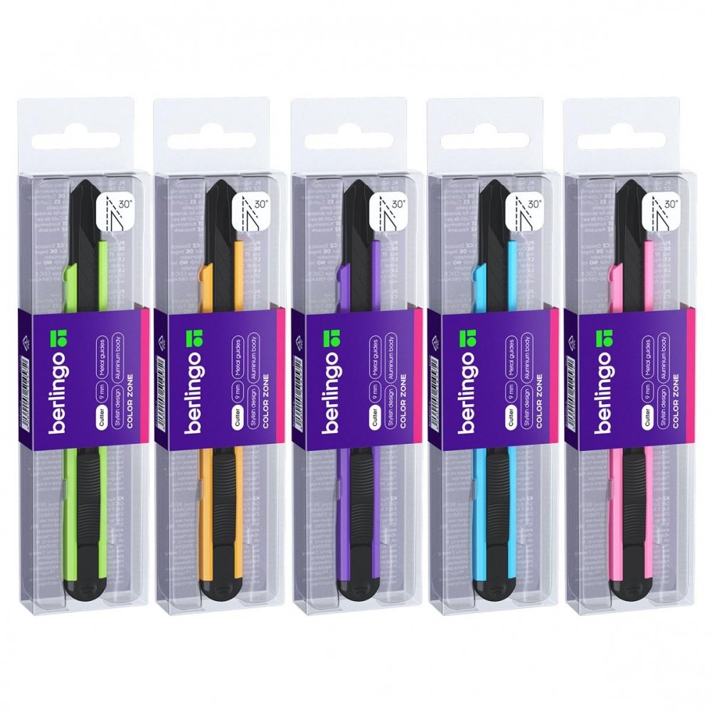 Нож канцелярский 9мм Berlingo "Color Zone", черное лезвие, auto-lock, металл. направл., ассорти, евро. Арт. BM4120