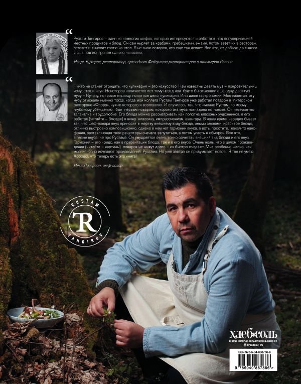 Рустам Тангиров — один из самых востребованных шеф-поваров России, художник от кулинарии, обладатель многочисленных кулинарных наград. В своей новой книге Рустам рассказывает и показывает, как можно необычно и красиво подать еду из русской печи или приготовленную в условиях дикой природы — на костре в лесу, у моря или озера, не используя при этом современные гаджеты и дорогостоящее оборудование. Некоторые рецепты адаптированы для приготовления на профессиональной кухне.