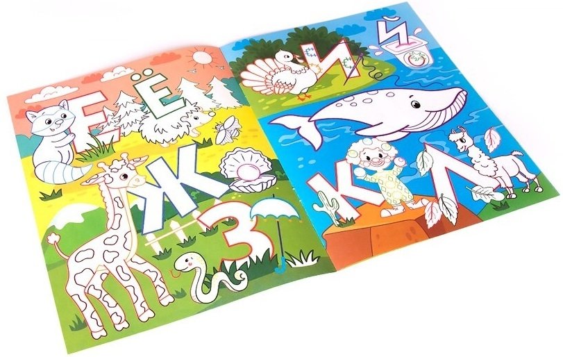Детская обучающая раскраска совмещает игру и обучение, что позволяет малышу провести время с пользой. На страницах раскраски ребенок найдет черно-белые иллюстрации, которые ему и предстоит раскрасить.