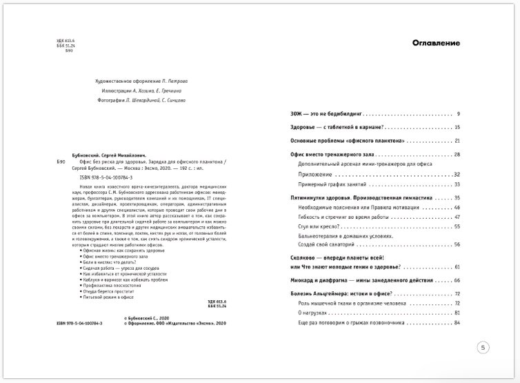Новая книга известного врача-кинезитерапевта, доктора медицинских наук, профессора С.М. Бубновского адресована работникам офисов: менеджерам, бухгалтерам, руководителям компаний и их помощникам, IT- специалистам, дизайнерам, проектировщикам, операторам, административным работникам и другим специалистам, которые проводят свои рабочие дни в офисе за компьютером. В этой книге автор рассказывает о том, как сохранить здоровье при длительной сидячей работе за компьютером и как можно своими силами, без лекарств и других медицинских вмешательств избавиться от болей в спине, пояснице, локтях, кистях рук и ногах, от головных болей и головокружения, а также о том, как снять синдром хронической усталости, которым страдают многие работники офисов.