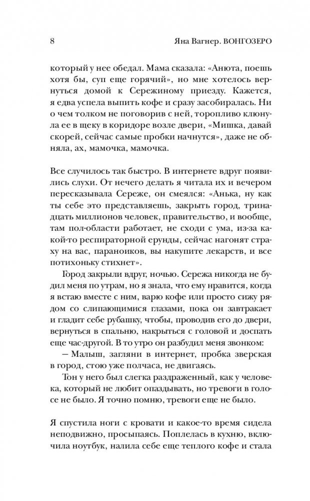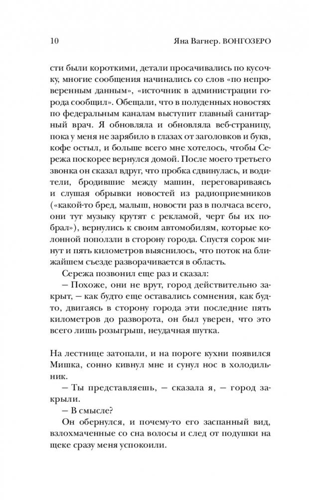 "Вонгозеро" — роман-катастрофа, антиутопия, роуд-стори, постмодернистский триллер. Вошел в лонг-листы премий "НОС" и "Национальный бестселлер", был переведен на 11 языков и стал финалистом премий Prix Bob Morane и журнала Elle. На платформе PREMIER выходит его экранизация — киносериал "Эпидемия". "Город закрыли вдруг, ночью. Я точно помню, тревоги еще не было. Невозможно было представить себе, что карантин не закончится за несколько недель. По телевизору в эти дни говорили “временная мера”, “ситуация под контролем”, “в городе достаточно лекарств, поставки продовольствия организованы”. Это было по-своему даже приятно — внеурочный отпуск; наша связь с городом была не прервана, а просто ограничена. Идея пробраться туда казалась несрочной… Все случилось так быстро. Мы ужаснулись тому, какими были беспечными. Четыреста тысяч заболевших!" Так начиналась эпидемия.