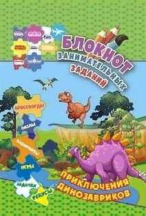 Блокнот занимательных заданий "Приключения динозавриков: пазлы, задачки, игры, ребусы, кроссворды, лабиринты", 105x160 мм, 32 листа