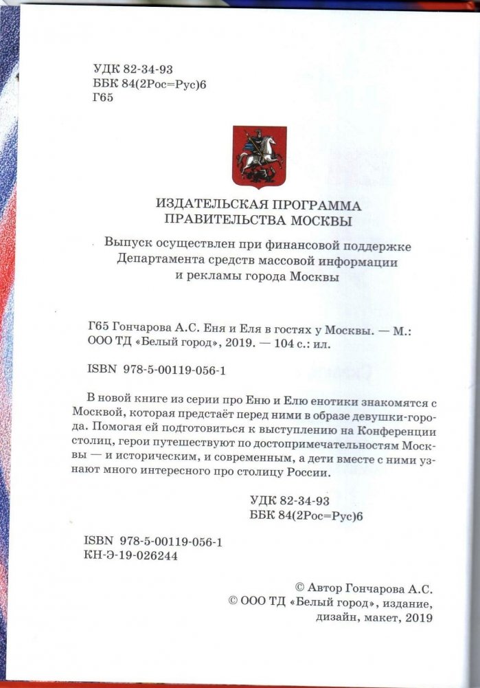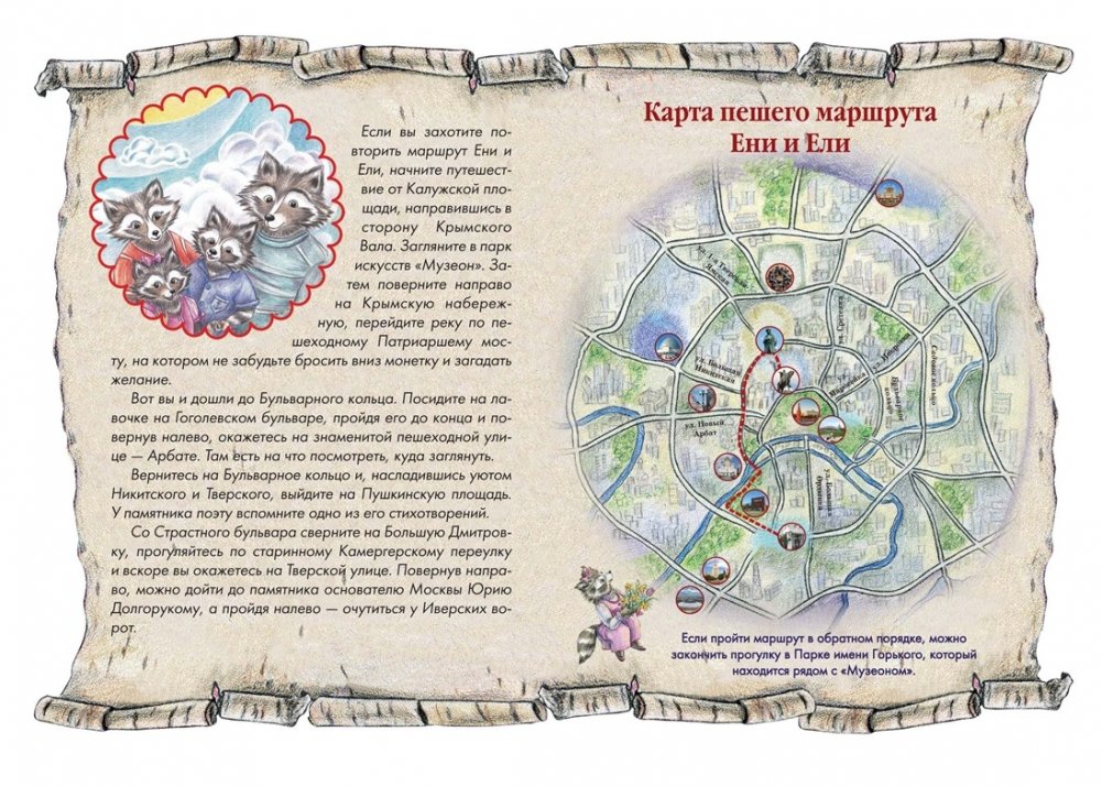 В новой книге из серии про Еню и Елю енотики знакомятся с Москвой, которая предстаёт перед ними в образе девушки-города. Помогая ей подготовиться к выступлению на Конференции столиц, герои путешествуют по достопримечательностям Москвы — и историческим, и современным, а дети вместе с ними узнают много интересного про столицу России. В этой книге вы найдёте добрые познавательные истории, прекрасные иллюстрации, полезную информацию, интересные факты из истории Москвы, а также чудесную викторину.