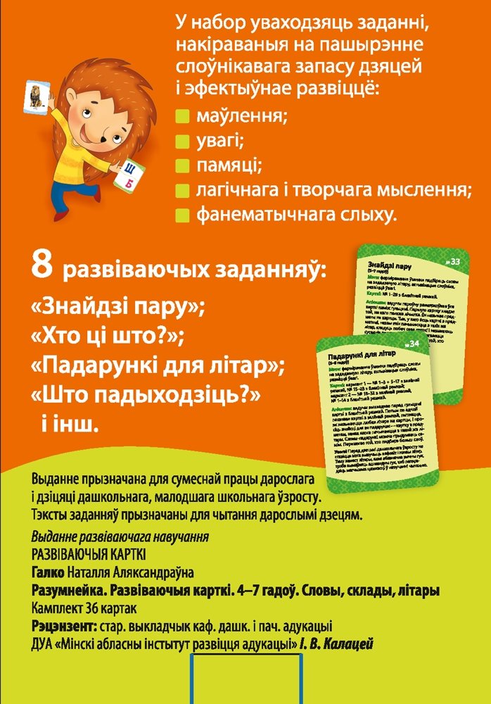 У набор уваходзяць заданні, накіраваныя на пашырэнне слоўнікавага запасу дзяцей і эфектыўнае развіцце: