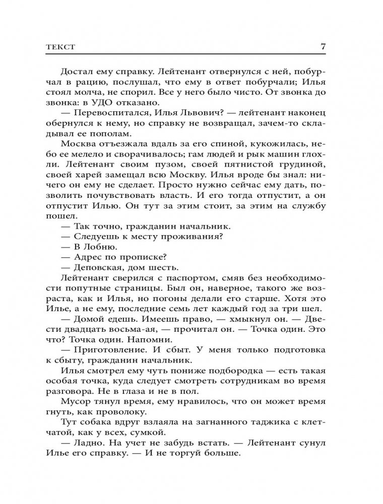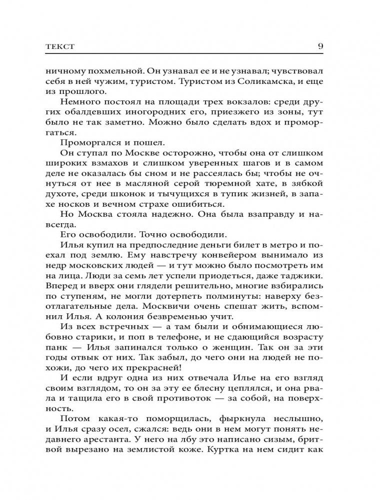 «Текст» – это роман о сегодняшней Москве, о сегодняшней России, о каждом из нас. О нашем бесправии перед «органами», о нашей зависимости от мобильных, о мести и о прощении, о невозможной любви и несбыточных мечтах. Настоящий новый русский роман, которого не появлялось так давно.