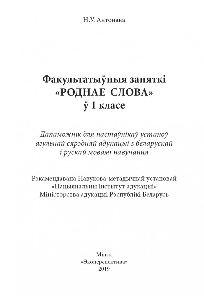 Роднае слова. 1 клас. Факультатыўныя заняткі