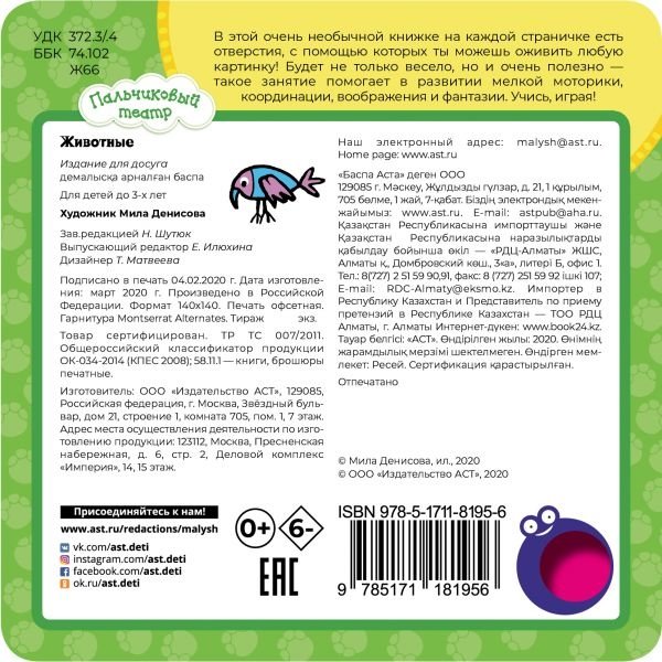 В этой очень необычной книжке на каждой страничке есть отверстия, с помощью которых можно оживить любую картинку! Это не только весело, но и очень полезно — такое занятие помогает малышам в развитии мелкой моторики, координации, воображения и фантазии.