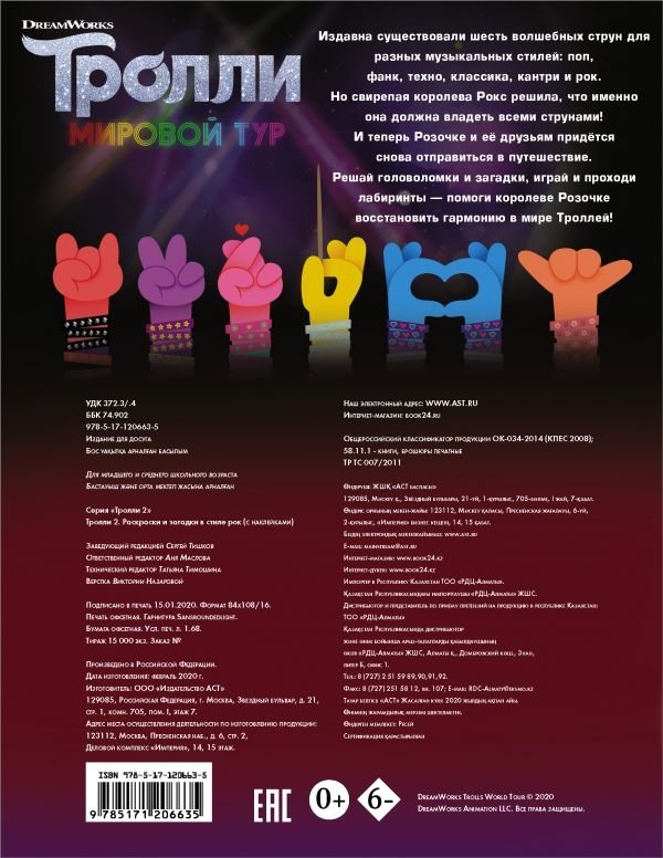 Тролли 2. Раскраски и загадки в стиле рок (с наклейками)