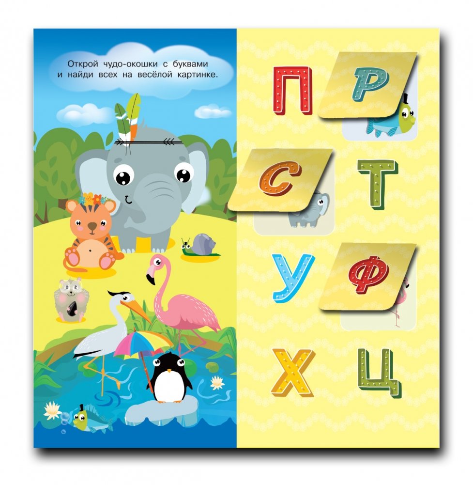 Замечательное пособие поможет ребёнку запомнить, как пишутся и читаются буквы русского алфавита. Листая страницы книги и открывая специальные окошки-клапаны, малыш выучит алфавит от «А» до «Я», а заодно потренирует память и интеллект, обогатит словарный запас, расширит кругозор.