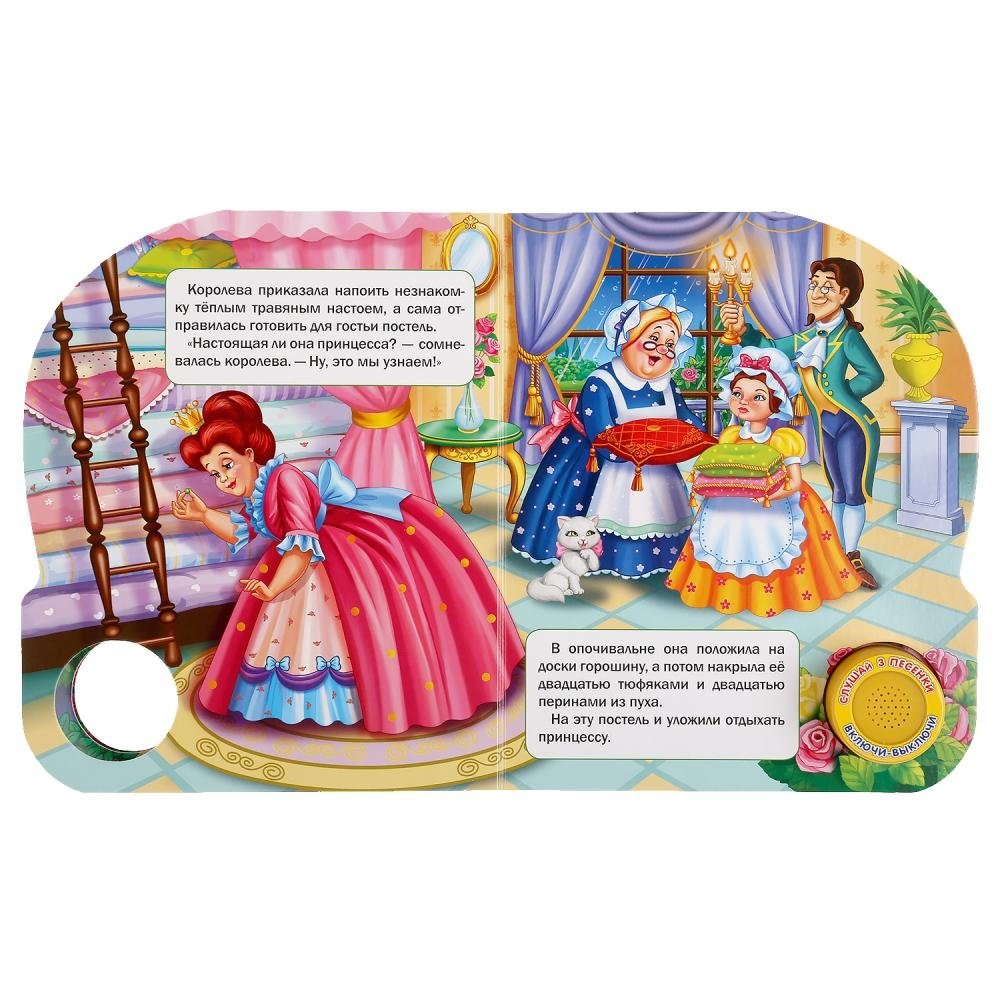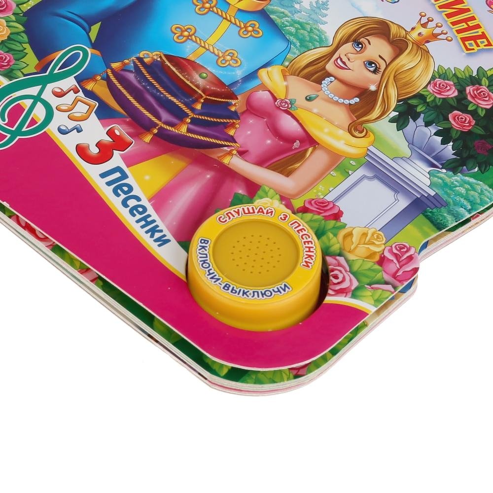 Компактная книга из прочного безопасного картона с кнопкой для прослушивания. Любимые авторы, народные фольклор, истории по мультфильма, и конечно, 3 песенки!