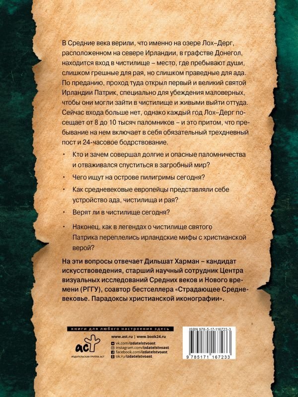 В Средние века верили, что именно на озере Лох Дерг, расположенном на севере Ирландии, в графстве Донегол, находится вход в чистилище — место, где пребывают души, слишком грешные для рая, но слишком праведные для ада. По преданию, проход туда открыл первый и великий святой Ирландии Патрик, специально для убеждения маловерных, чтобы они могли зайти в чистилище и живыми выйти оттуда. Сейчас входа больше нет, однако каждый год Лох Дерг посещает от 8 до 10 тысяч паломников — и это при том, что пребывание на нем включает в себя обязательный трехдневный пост и 24-часовое бодрствование. Кто и зачем совершал долгие и опасные паломничества и отваживался спуститься в загробный мир? Чего ищут на острове пилигримы сегодня? Как средневековые европейцы представляли себе устройство ада, чистилища и рая? Верят ли в чистилище сегодня? Наконец, как в легендах о Чистилище святого Патрика переплелись ирландские мифы с христианской верой? На эти вопросы отвечает Дильшат Харман — кандидат искусствоведения, старший научный сотрудник Центра визуальных исследований Средних веков и Нового времени (РГГУ), соавтор бестселлера «Страдающее Средневековье. Парадоксы христианской иконографии».