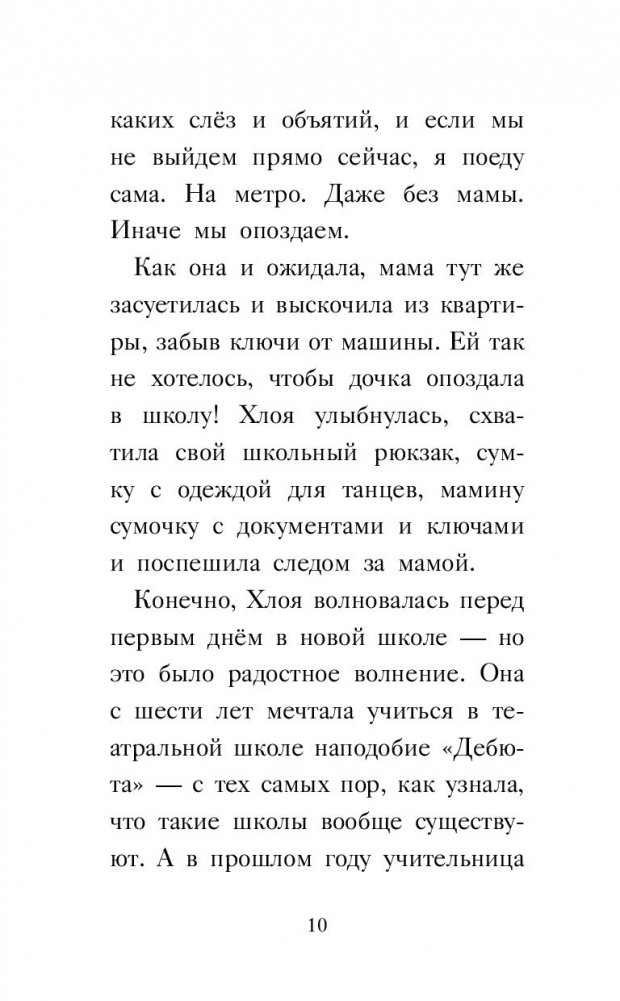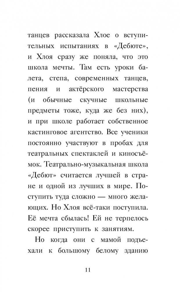 Хлоя мечтает быть актрисой. Поэтому она с детского сада участвовала во всех спектаклях и выступлениях, занималась танцами и пением. Но теперь она покорила следующую ступень – поступила в лучшую в Британии музыкально-театральную школу.