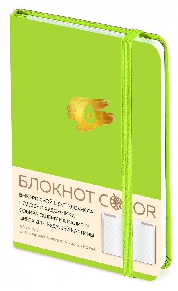 Этот универсальный блокнот подойдет как для учебы, так и для работы. Блок выполнен из кремовой офсетной бумаги и состоит из 80 листов, не датирован внутри. Обложка под кожу, декорирована фольгой золотого цвета, а каптал, ленточка ляссе и резинка – в цвет обложки.