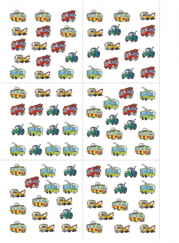 Дидактическая настольная игра включает 36 двусторонних карт с цветными изображениями пяти видов транспорта. Играть могут от 2 до 6 человек. Цель игры: автоматизация звука [р]; развитие умения согласовывать числительные с существительными и словосочетаниями «существительное + прилагательное»; упражнение в пересчете предметов, расположенных вразнобой; развитие зрительного внимания, быстроты реакции.