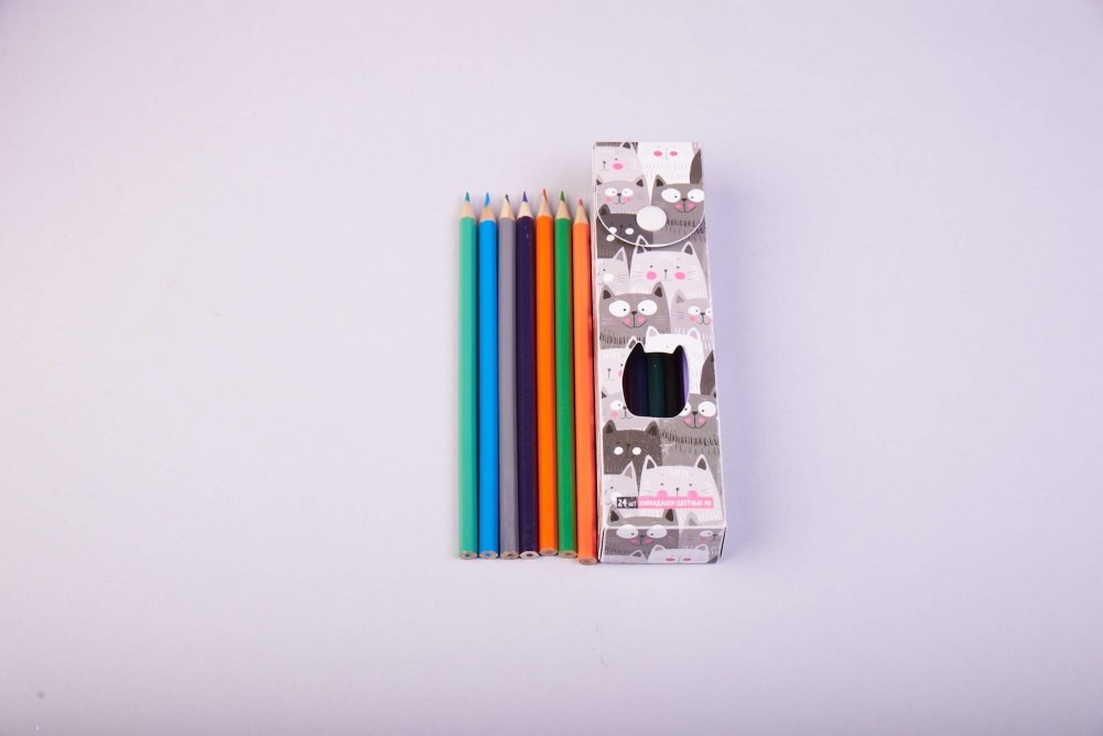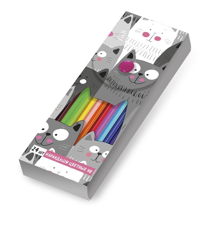 Пластиковый пенал с карандашами "Милые коты" (24 штуки)