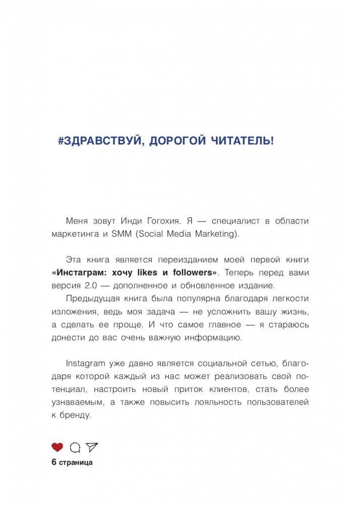 Инстаграм не стоит на месте: появляются новые инструменты, правила, тенденции. Именно поэтому бестселлер «Инстаграм: хочу likes и followers» просто не мог не обновиться! В дополненном издании, помимо главных принципов работы в Инстаграме, автор раскрывает такие темы, как:
