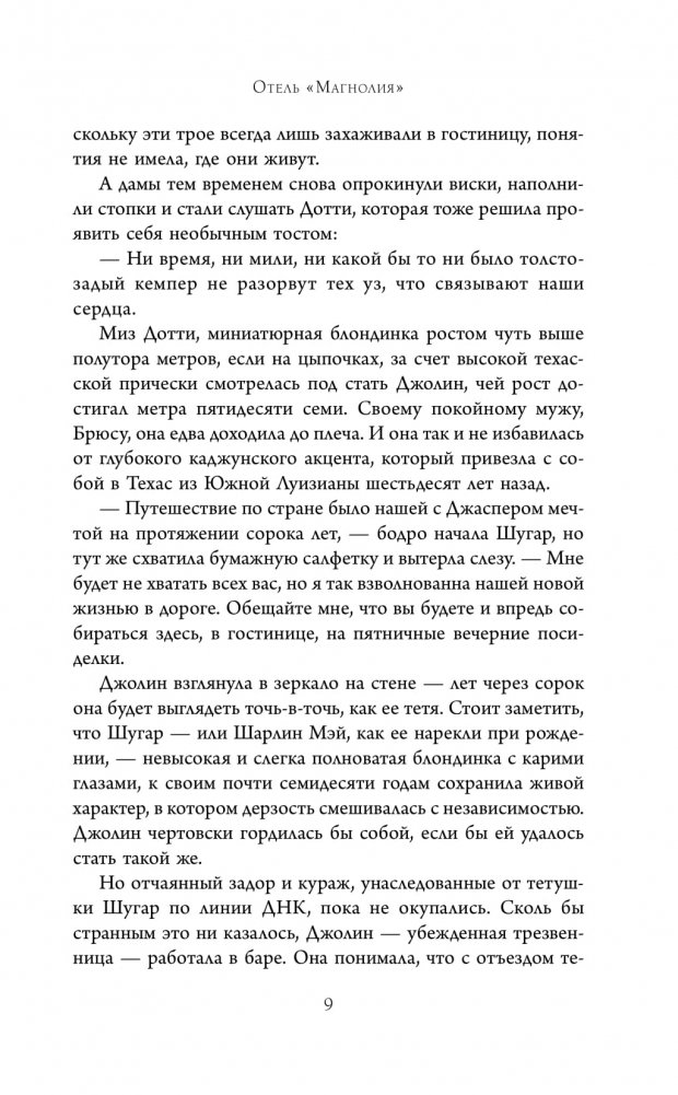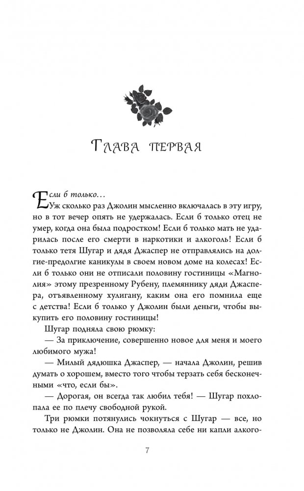 Мечта стала явью для Джолин Бруссар: она унаследовала маленький отель в викторианском стиле, расположенный среди живописных сосен Восточного Техаса. Для нее это шанс начать новую жизнь без чувства вины за неудавшуюся попытку спасти свою мать. Но в этом идеальном плане есть одно «но»: вторая половина дома принадлежит упрямому и нелюдимому Такеру Малоуну. Два года назад он потерял любимую жену и с тех пор топит свою скорбь в выпивке.
