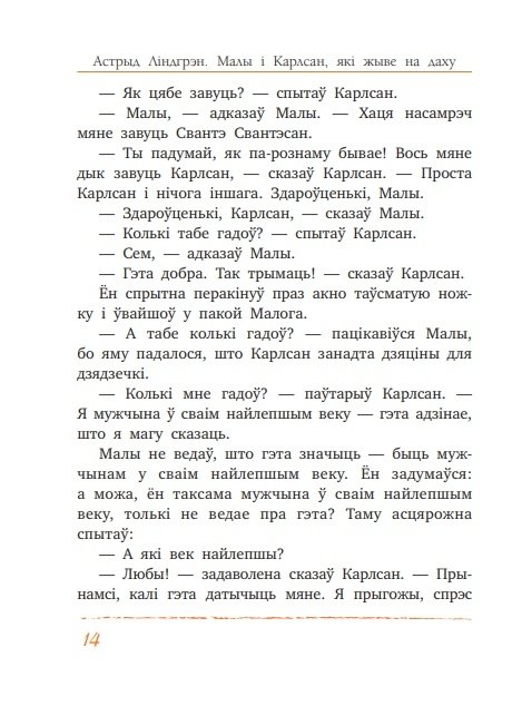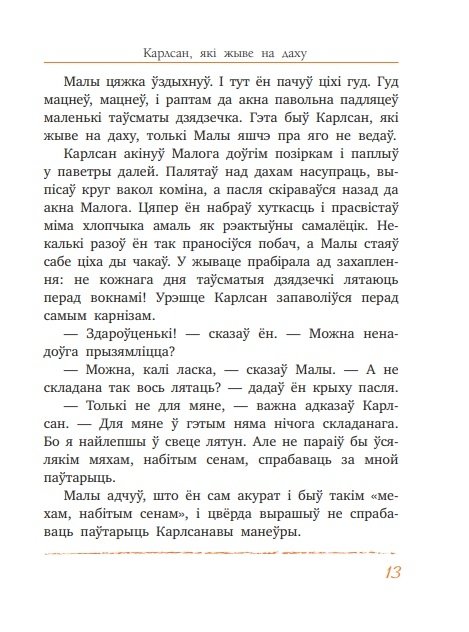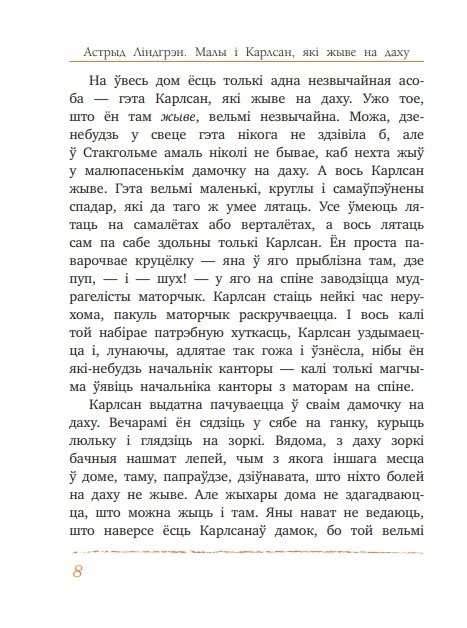 «На самай звычайнай стакгольмскай вуліцы ў самым звычайным доме жыве самая звычайная сям’я на прозвішча Свантэсан…» Так пачынаюцца незвычайныя прыгоды Малога і Карлсана, якіх палюбілі дзеці і дарослыя ва ўсім свеце. Далучайся і ты да вясёлай, кранальнай і трошачкі сумнай чытанкі!
