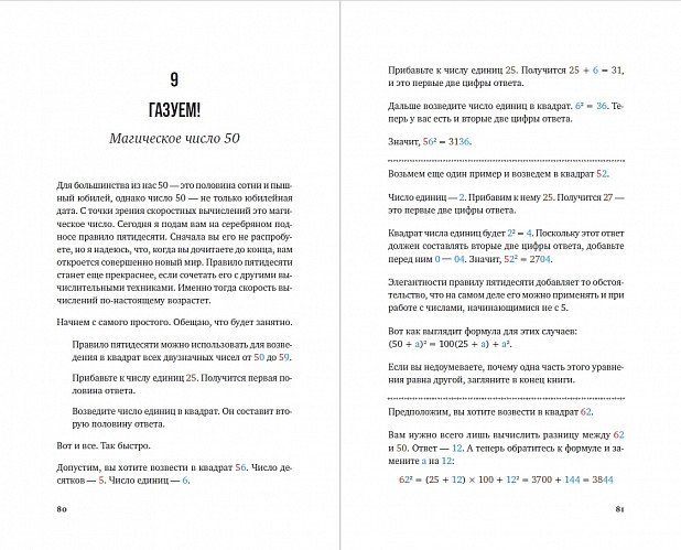 Забудьте о калькуляторе, эта книга научит вас скоростным вычислениям в уме или с карандашом. Чтобы считать быстрее, достаточно думать немного иначе, уверен ее автор Ингве Фогт - норвежский журналист научного журнала Apollon и фанат математики. Вы узнаете о простых и нескучных методах быстрого счета, для которых понадобится лишь знание базовых арифметических правил. Метод Трахтенберга, китайский способ счета с помощью черточек и множество других математических техник помогут вам без труда складывать и вычитать, умножать и делить, извлекать квадратный корень и возводить в квадрат большие числа. Эта книга для любителей чисел всех возрастов, а также для тех, кто хочет овладеть супербыстрым счетом - для учебы, работы или удобства в повседневной жизни.
