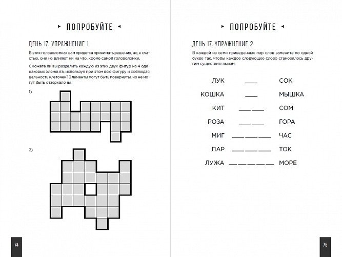 Вы — это ваш мозг. Ваш мозг обладает невероятным потенциалом, и пришла пора раскрыть его в полной мере. Простые упражнения, основанные на современных научных исследованиях, помогут вам эффективнее использовать свои врожденные способности. Вы научитесь принимать более правильные решения, быстрее и эффективнее думать. Эта программа упражнений поможет справиться с нервным напряжением, повысить работоспособность и развить гибкость мышления. Тренируйтесь каждый день, и уже через 40 дней вы увидите результат.