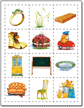 Комплект состоит из 16 карт (на каждой по 6 рисунков) и 96 маленьких карточек с такими же рисунками. На обороте каждой карты – ее порядковый номер, на обороте карточки – соответствующее рисунку английское слово с транскрипцией. Рисунки и слова повторяют рисунки и слова в Coursebook. Узнав картинку из учебника, ребенок легче вспоминает относящееся к ней слово. Игра в лото способствует закреплению материала и одновременно дает детям возможность переключиться, развлечься. Лексика запоминается в полном смысле слова играючи.