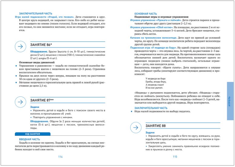 • примерное содержание физкультурных занятий.