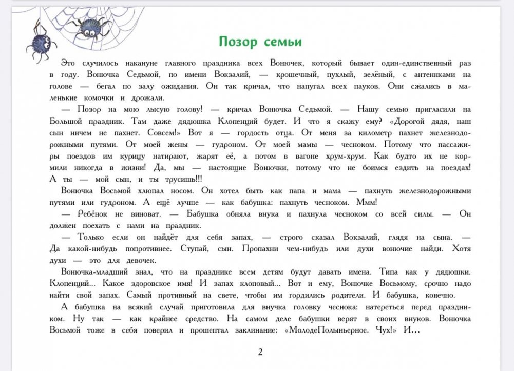 Думаешь, это просто интересная книжка с картинками? Нет, нет и нет! Она действительноинтересная, с картинками, но совсем не простая. Её герою, Вонючке Восьмому, предстоитполучитькрутое имя, достойное продолжателя великого рода Вонючек. Для этого ондолжен пройти через множество испытаний и найти для себя самый противный в мирезапах. Чего только не придётся ему перенюхать: и лук, и чеснок, и бензин… Фу-у-у!
