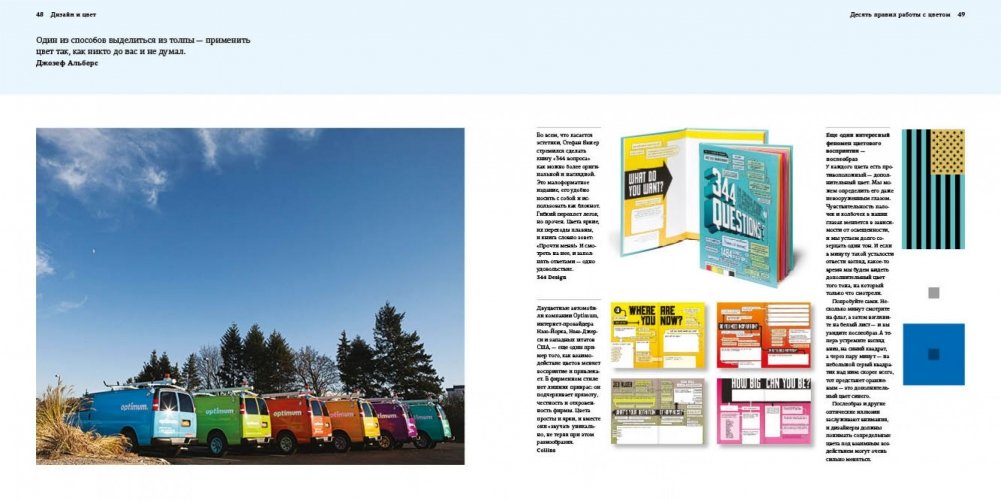 Вы научитесь грамотно говорить с клиентами о цвете и успешно презентовать свои проекты, а также увидите примеры блестящих и вдохновляющих цветовых решений ведущих мировых дизайнеров. Эта и другая важная информация теоретического и практического характера позволит вам добиться максимально эффективного использования цвета в своих работах.