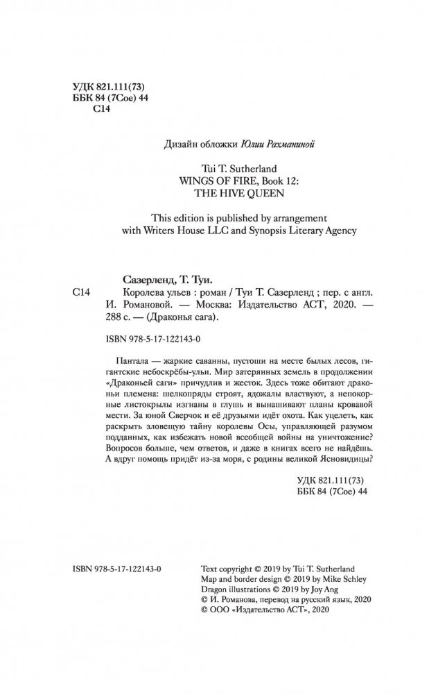 Пантала - жаркие саванны, пустоши на месте былых лесов, гигантские небоскрёбы-ульи. Мир затерянных земель в продолжении "Драконьей саги" причудлив и жесток. Здесь тоже обитают драконьи племена: шелкопряды строят, ядожалы властвуют, а непокорные листокрылы изгнаны в глушь и вынашивают планы кровавой мести. За юной Сверчок и её друзьями идёт охота. Как уцелеть, как раскрыть зловещую тайну королевы Осы, управляющей разумом подданных, как избежать новой всеобщей войны на уничтожение? Вопросов больше, чем ответов, и даже в книгах всего не найдёшь. А вдруг помощь придёт из-за моря, с родины великой Ясновидицы?
