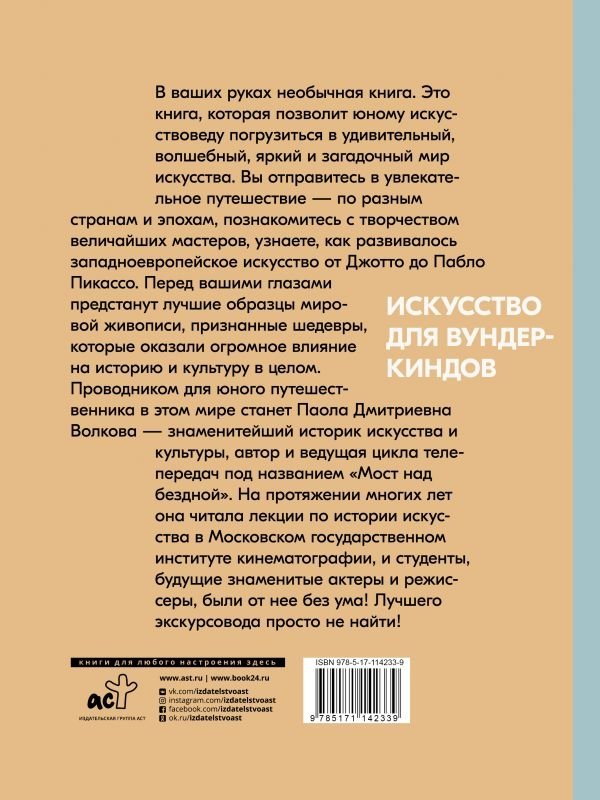 В ваших руках необычная книга. Это книга, которая позволит юному искусствоведу погрузиться в удивительный, волшебный, яркий и загадочный мир искусства. Вы отправитесь в увлекательное путешествие – по разным странам и эпохам, познакомитесь с творчеством величайших мастеров, узнаете, как развивалось западноевропейское искусство от Джотто до Пабло Пикассо. Перед вашими глазами предстанут лучшие образцы мировой живописи, признанные шедевры, которые оказали огромное влияние на историю и культуру в целом.