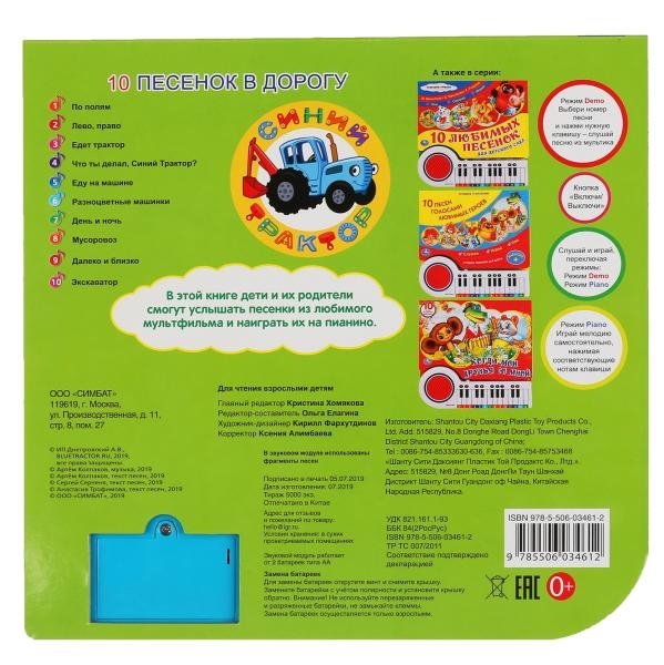 Синий трактор. 10 песенок в дорогу. Книга-пианино с 23 клавишами и 10 песенками