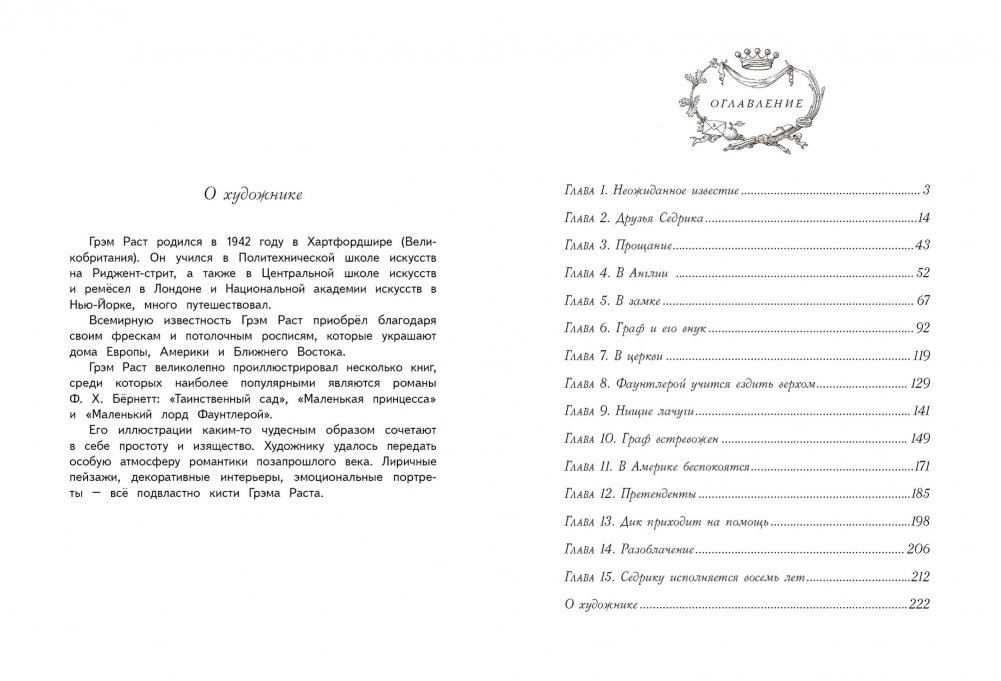 История о необыкновенной доброте семилетнего мальчика, написанная англо-американской писательницей Фрэнсис Бёрнетт, вот уже более ста лет покоряет сердца детей и взрослых. А сколько художников её иллюстрировали! Мы рады предложить вам великолепное подарочное издание с иллюстрациями известного английского художника Грэма Раста.