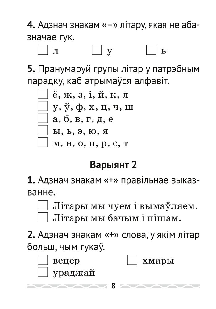 Беларуская мова. 2 клас. Тэматычны кантроль