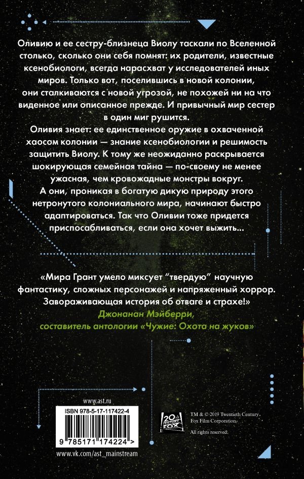Оливия знает: ее единственное оружие в охваченной хаосом колонии — знание ксенобиологии и решимость защитить Виолу. К тому же неожиданно раскрывается шокирующая семейная тайна — по-своему не менее ужасная, чем кровожадные монстры вокруг. А они, проникая в богатую дикую природу этого нетронутого колониального мира, начинают быстро адаптироваться. Так что Оливии тоже придется приспосабливаться, если она хочет выжить...
