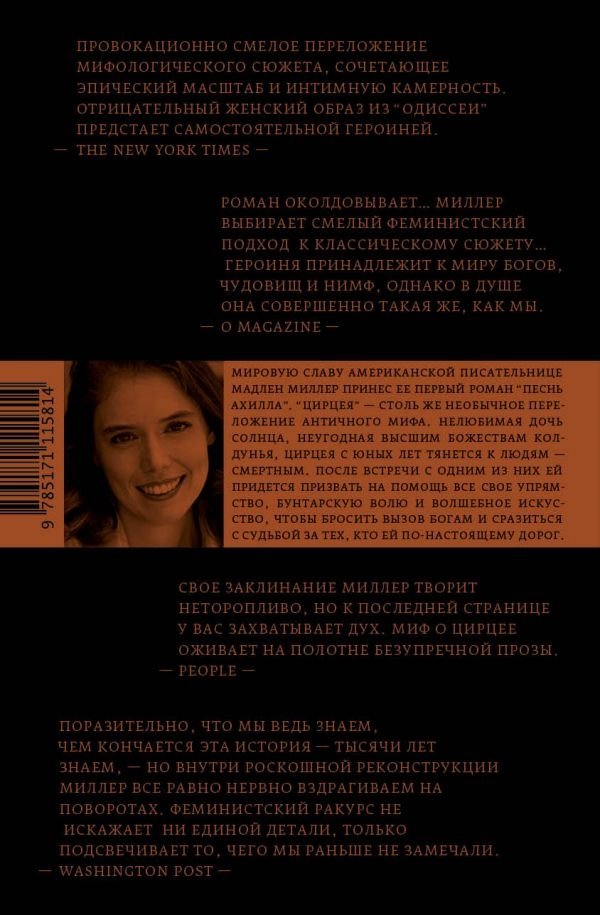 Американка Мадлен Миллер, филолог, классик и шекспировед, стала известна читателям всего мира благодаря своему дебютному роману «Песнь Ахилла». «Цирцея» тоже уходит корнями в гомеровский эпос и так же завораживает неожиданной реконструкцией личной истории внутри мифа. Дочь титана Гелиоса, самого солнца, Цирцея растет в чертогах отца одинокой и нелюбимой. Божественное могущество ей недоступно, но когда дает о себе знать ее непонятный и опасный дар, боги и титаны отправляют новоявленную колдунью в изгнание на необитаемый остров. Лишь изредка внешний мир врывается в ее одинокую вечность, пока не пристает к берегу избитый штормами корабль Одиссея. И далеко не всем последствиям этой встречи суждено остаться в легендах...
