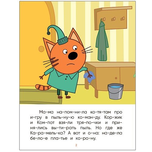 Что делать, если ребенок учится читать, а все сказки и стихи уже зачитаны до дыр? На помощь придет книга «В гостях у Горчицы» из серии «Три кота. Читаю по слогам» — история по мотивам любимого мультфильма. Слова, разделенные на фонетические слоги, крупный шрифт, понятные тексты и яркие иллюстрации — все в этой книге предусмотрено для того, чтобы читать по слогам ребенку было легко и интересно. Удобный формат книг позволит наслаждаться чтением не только дома, но и на прогулке, в пути или в очереди. Из книги «В гостях у Горчицы» ребенок узнает, как назаконченное дело может испортить настроение — и как друзья могут превратить любую скучную работу в веселое приключение.