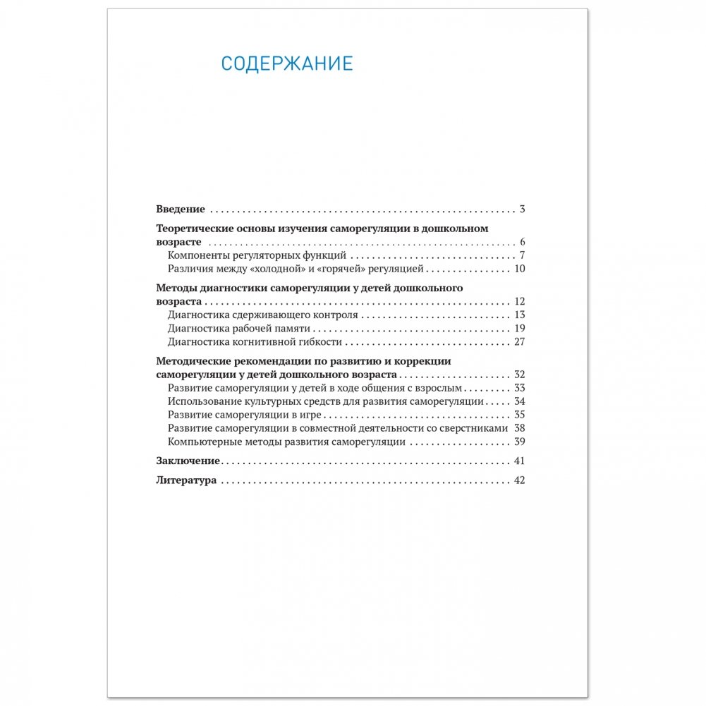 В пособии представлен комплекс диагностических методик, направленных на изучение регуляторных функций старших дошкольников. Предложенные методики позволяют сделать вывод об уровне развития отдельных компонентов регуляторных функций, выявить и точно определить слабые и сильные стороны каждого ребенка, разработать рекомендации по дальнейшему развитию саморегуляции дошкольника и его успешной готовности к обучению в школе.