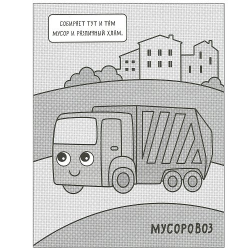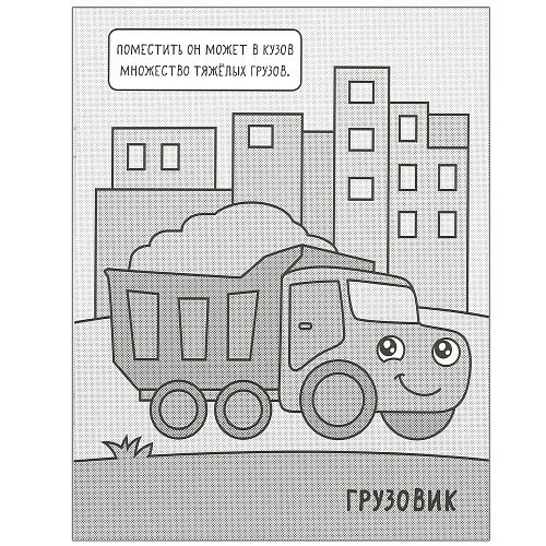 Веселые загадки и крупные области для раскрашивания отлично подойдут для самых маленьких художников. Кроме того, книжка познакомит ребенка со строительной техникой.