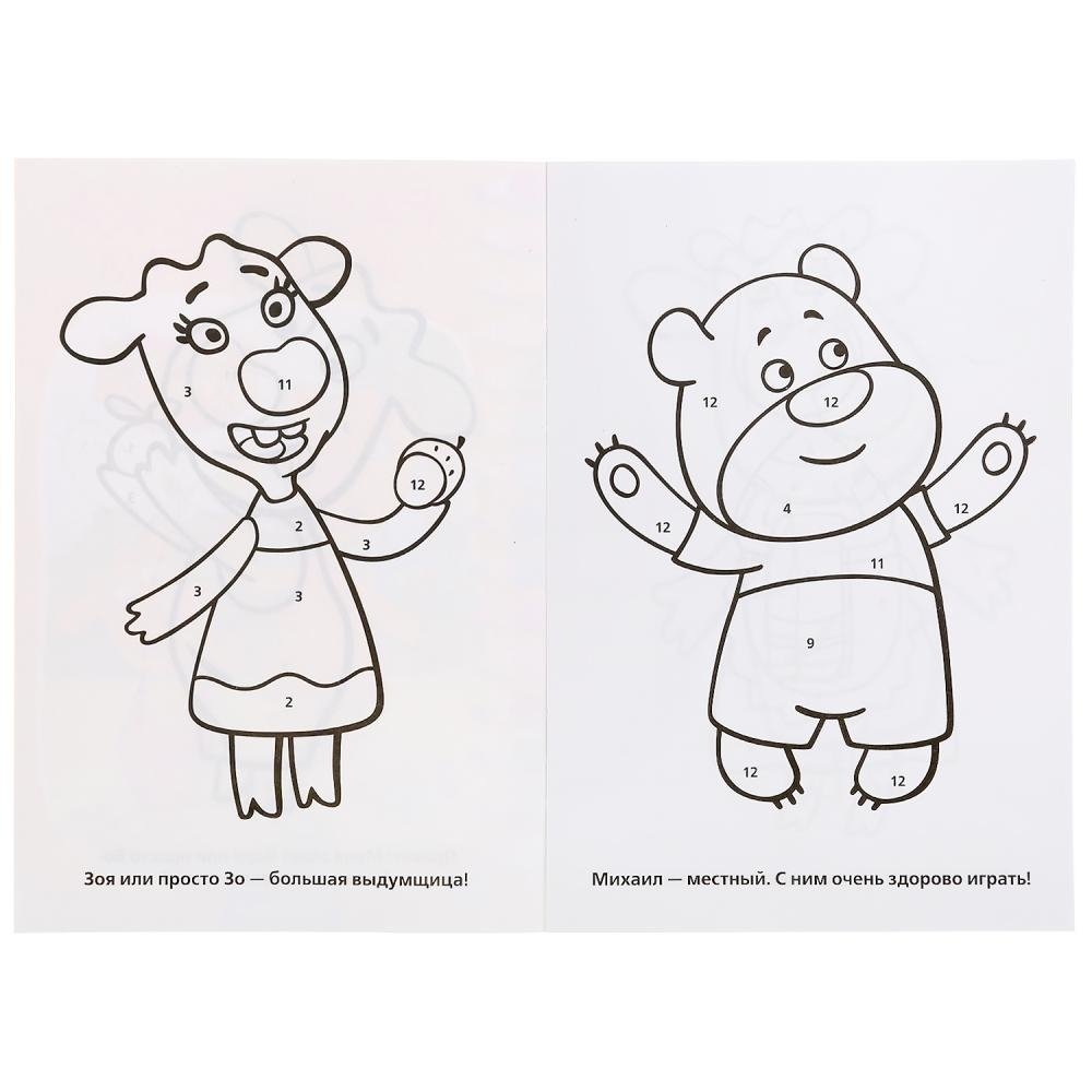 Малыш будет рад встрече с героями мультфильма на страницах раскраски. Пользуясь цветовыми подсказками, он правильно раскрасит части картинок. Благодаря компактным размерам раскраску удобно брать с собой в дорогу.