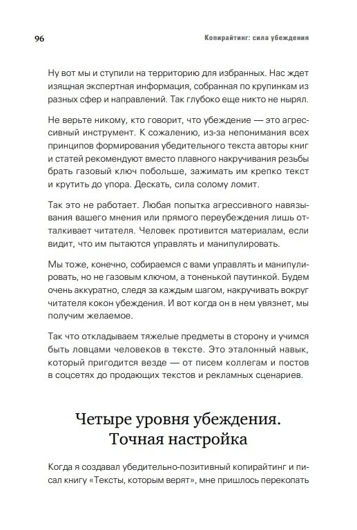 Книга остроумна, забавна, легка, но главное — убедительна и полезна. “Копирайтинг: сила убеждения” поможет копирайтерам, контент-менеджерам, фрилансерам и владельцам сайтов прокачать суперспособности написания текстов - ведь там, где буксуют прочие форматы, выигрывает УПК.