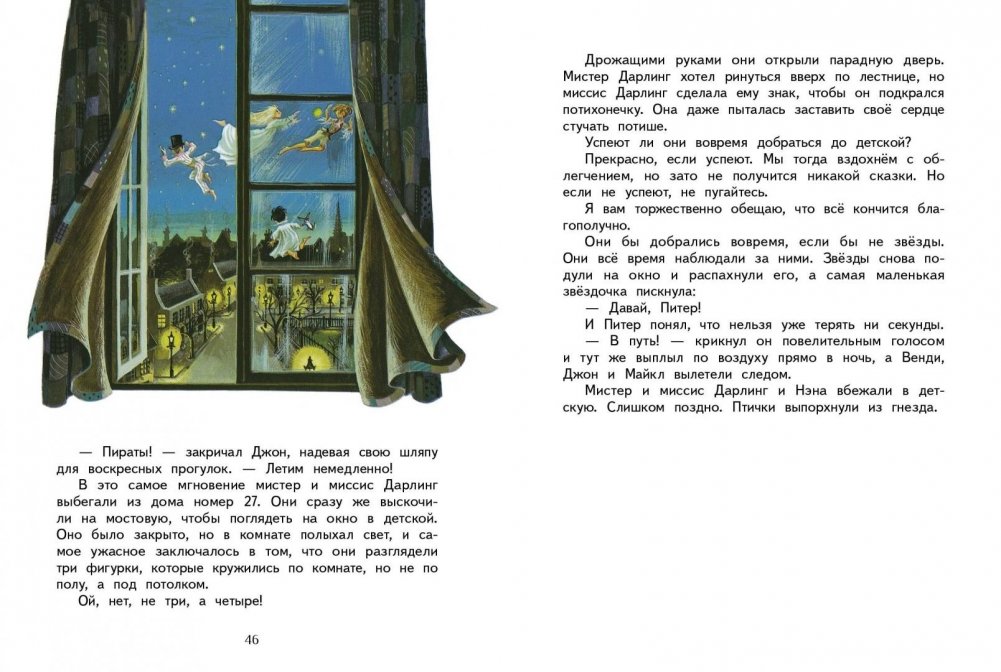 Рано или поздно все дети вырастут и станут взрослыми… Все, кроме одного единственного мальчика по имени Питер Пэн. Мальчика, который умеет летать и дружит с феями. Будьте внимательны - он может появиться в оконном проеме вашей детской и увлечь вас за собой. Ну а кто из нас сможет отказаться от приглашения побывать на сказочном острове, где есть самые настоящие русалки, индейцы и пираты… И где не нужно ходить в школу и делать уроки! Замечательно, правда? Именно такая история произошла с героями этой книги.