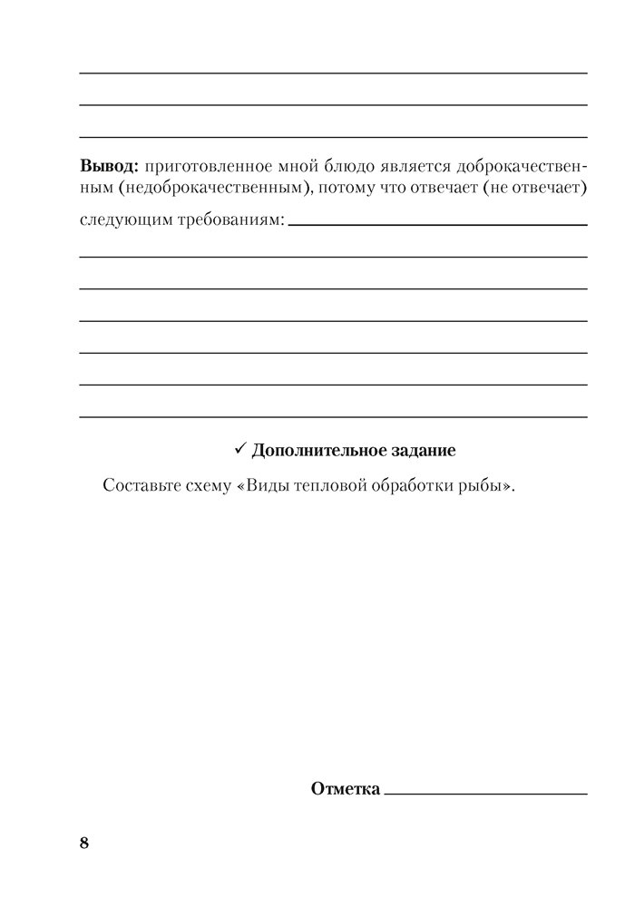 Тетрадь для практических работ по трудовому обучению (обслуживающий труд) для 8 класса