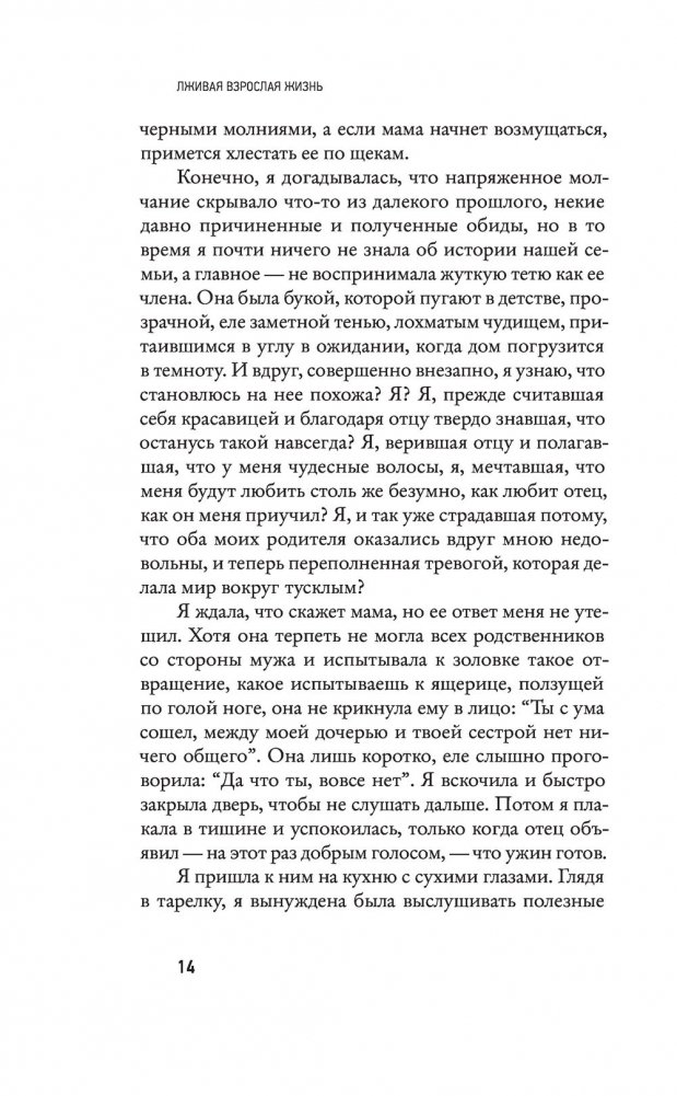 Главная героиня и рассказчица, превращаясь на страницах книги из наивной девочки в бунтующего, но доброжелательного и умеющего любить тинейджера, окунается во взрослую жизнь. Выдержит ли ее хрупкая психика тяжкий груз семейных тайн? Удастся ли ей смириться с предательством самых близких людей? И надо ли ей с этим смиряться?