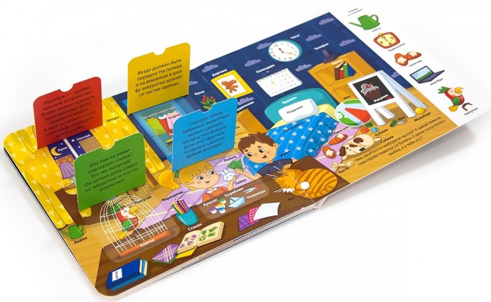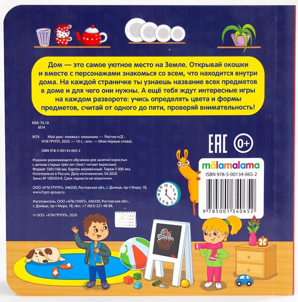 Дом — это самое уютное место на Земле. Открывай окошки и вместе с персонажами знакомься со всем, что находится внутри дома. На каждой страничке ты узнаешь название всех предметов в доме и для чего они нужны. А ещё тебя ждут интересные игры на каждом развороте: учись определять цвета и формы предметов, считай от одного до пяти, проверяй внимательность!