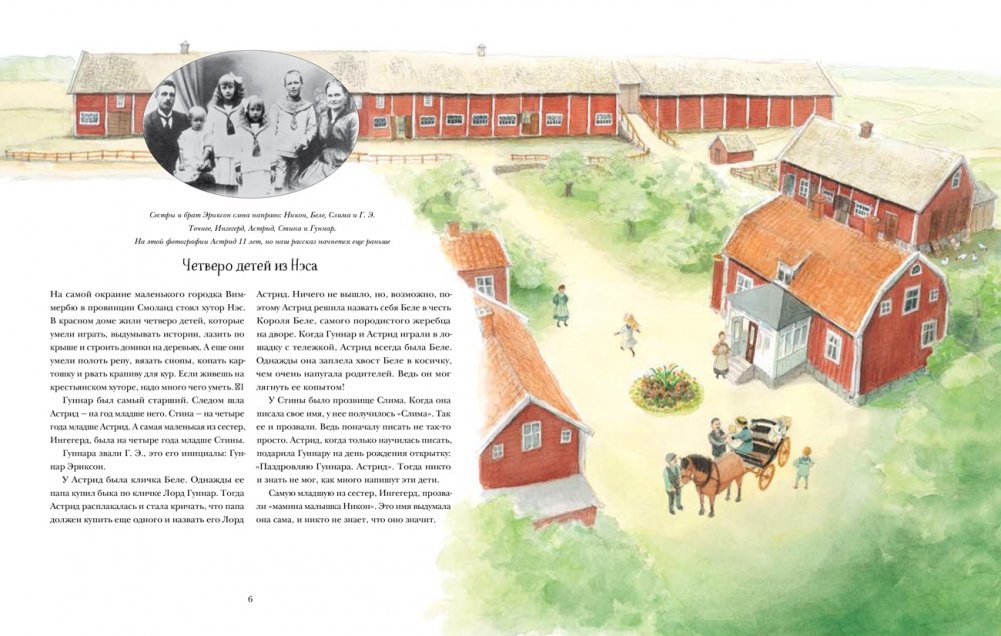 Писательница Кристина Бьорк и иллюстратор Эва Эриксон бережно воссоздали воспоминания знаменитой писательницы и показали, как раньше выглядела жизнь в Виммербю, где она родилась. Также в книге вы найдете архивные фотографии маленькой Астрид и ее семьи.