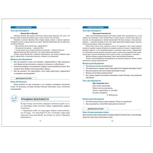 Этические беседы построены в формате развивающего диалога на основе доступных дошкольникам литературных произведений.