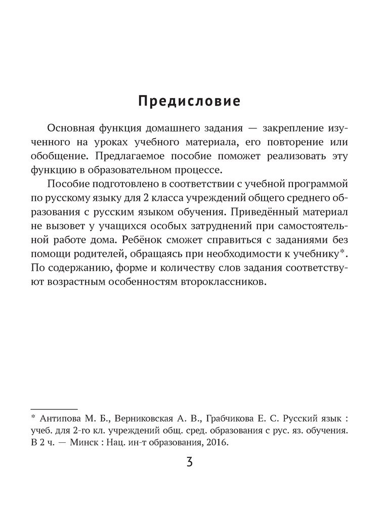 Пособие соответствует учебной программе для 2 класса и содержит альтернативные варианты домашнего задания по русскому языку. Приведённые упражнения помогут учащимся самостоятельно проверить и закрепить полученные на уроках знания.